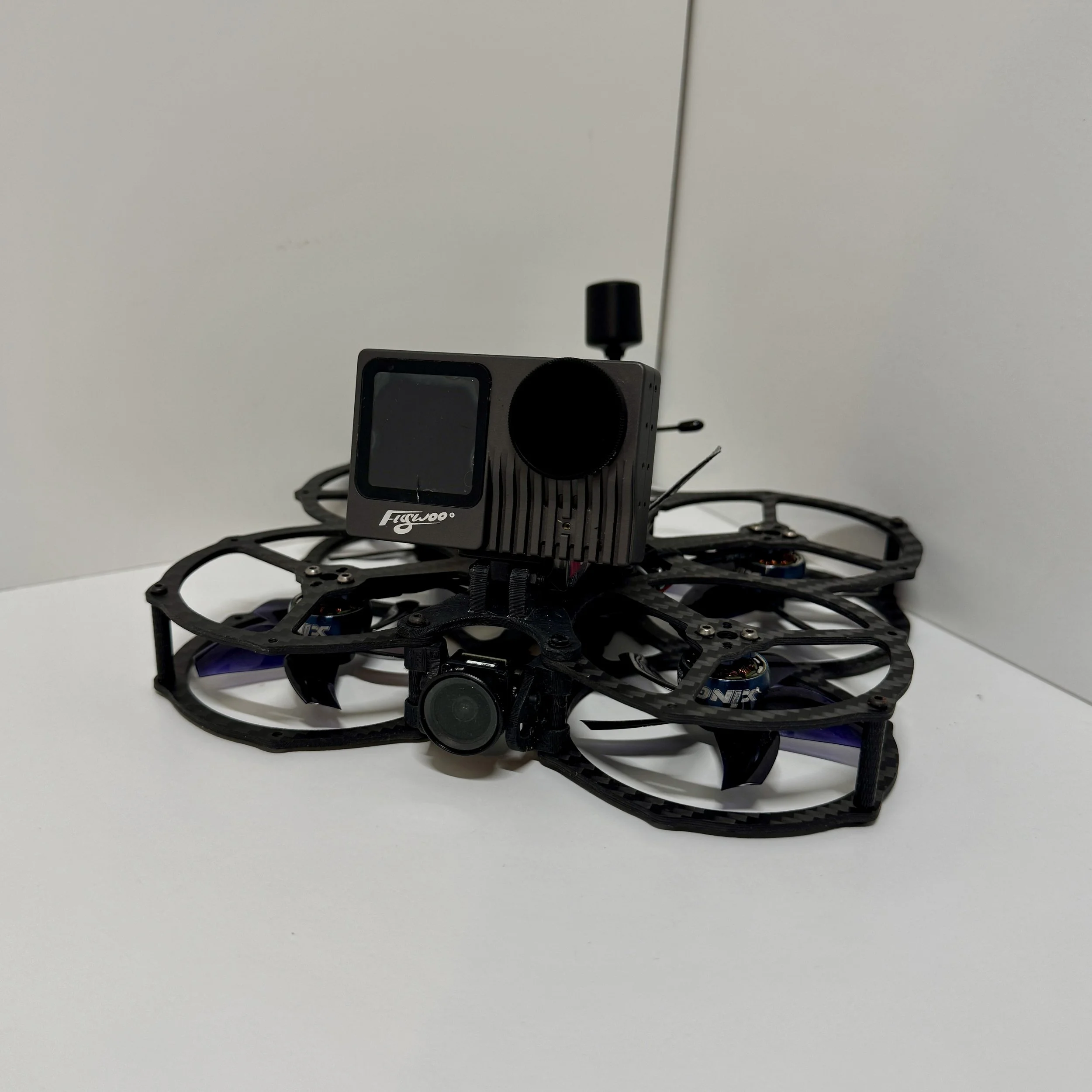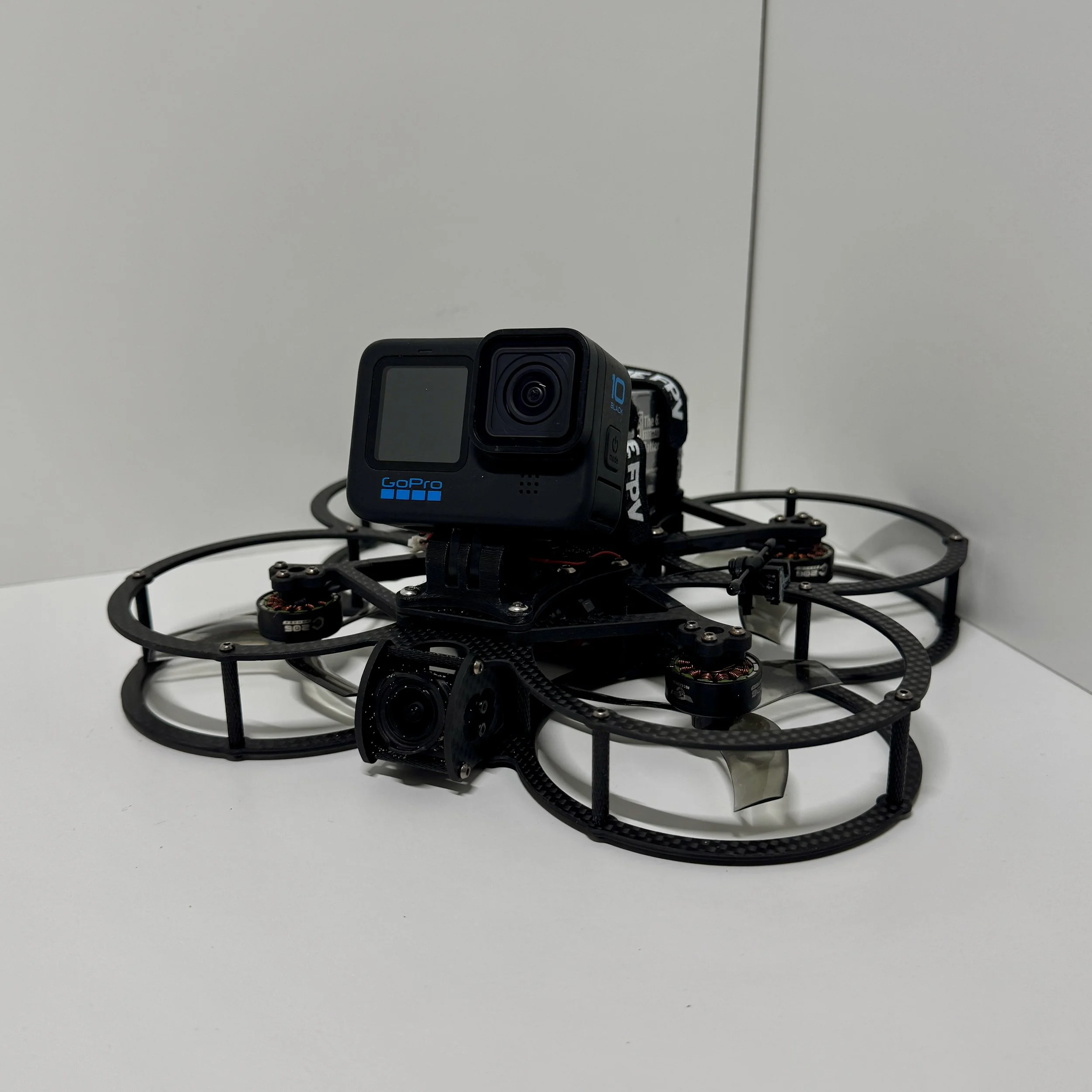 It is waterproof and powerful enough to carry a full-size GoPro, enabling high-quality video capture in challenging conditions. The cinewhoop style offers protection from the propellers making it ideal for safe operation near people and for filming at events, near water, or in unpredictable weather.